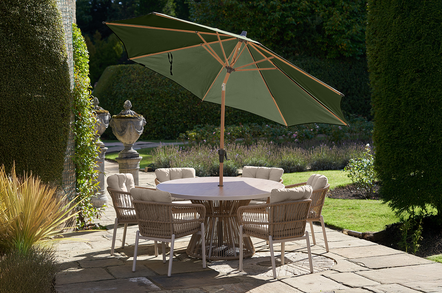 There may be times you want a break from the sun, so having an area of your garden that is shaded is essential for creating a serene outdoor space. Platinum Parasols are a great way to provide shade, whilst offering flexibility, style and a range of neutral colours that blend seamlessly into the natural setting of your garden like Taupe, Grey and Olive.